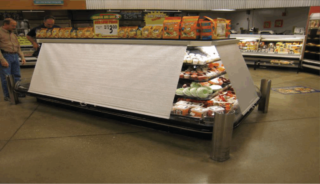 Those savings compound when covers are standardized chain-wide. Deployed on produce, meat, dairy, deli, beverage, and frozen, refrigerated display case night covers help cases open cold, cut morning pull-downs, and limit warm-up during stocking windows. Many retailers use them as a first-phase refrigeration retrofit solution ahead of deeper system upgrades, because the installation is fast and the savings begin immediately after close on day one.